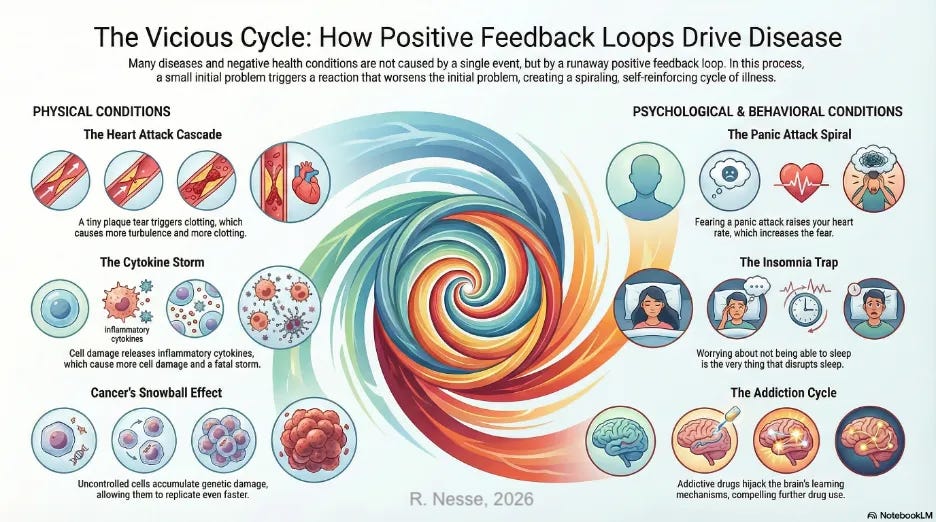 Runaway positive feedback and disease